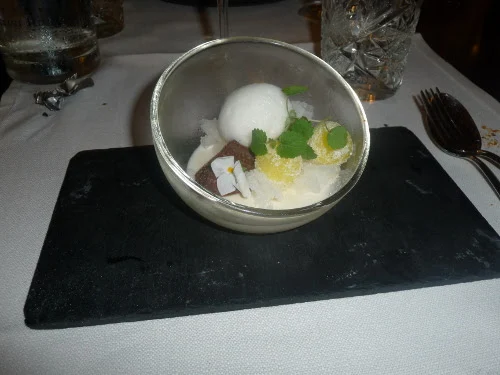 O meu jantar, na noite de chegada, na esplanada do restaurante do hotel: