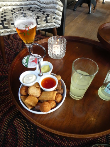 Do tempo do sol luminoso lá fora. Dos camiseiros brancos, azuis e às riscas que tanto gosto. Dos lenços de final de tarde em branco, verde-água, azul e destas cores misturadas. Dos gelados de fim-de-tarde. Dos passeios já imaginados aqui pelas redondezas. Do verde dos campos e dos muitos animais que vemos, entre vilas e cidades, pelas janelas dos comboios: cavalos, ovelhas e vaquinhas, claro. Mesmo que "retidos" num espaço, como uma sala ou um quarto, conseguimos imaginar como é esse mundo que nos transcende, neste tempo de narcisos aqui e e ali, pela cadência tão certa dos ciclos, nestas terras baixas, de canais e vedações frágeis de madeira, que mais parecem de brincar. Basta fechar os olhos e lembrar como são todos os anos estes anúncios de Primavera. E escancarar os ouvidos, às vozes dos petizes entre brincadeiras pelas ruas, neste tempo cálido e morno que nos envolve numa dormência suspensa. Ainda não se ouvem aqui e ali as máquinas de pressão de limpeza das lajes dos jardins, mas já fui surpreendida por uma, discretamente, esta semana. Entretanto, já inaugurámos a época dos espargos cá em casa, e hoje vamos ter sopinha dos ditos ao jantar, pois já comprámos o pacote com todos os ingredientes no Albert Heijn.