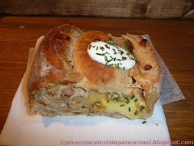 We had a German bread filled with bacon and cheese and a cup of gluhwein for lunch...