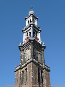 The steeple with its imperial crown was built in 1638. In 1906, in the celebrations of the 300 years of the birth of Rembrandt , the colour of the crown was changed from blue to golden yellow. In the "Rembrandt year" 2006, exactly one hundred years later, the colour was restored to its original blue.